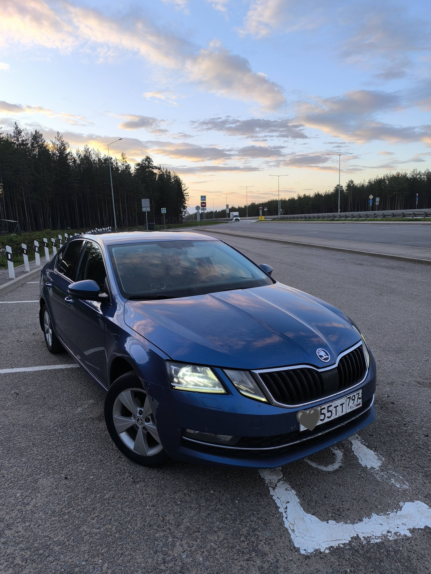 Машина Шкода Октавия. Все удобства есть. По платной дороге едем. За рулём опытный водитель